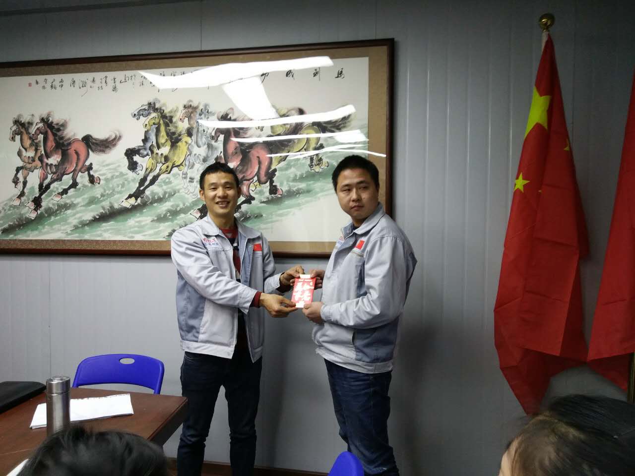 大會(huì)進(jìn)行到尾聲,對(duì)每月度之星的選舉。胡總(圖左)為月度之星徐財(cái)華戰(zhàn)士(圖右)頒發(fā)獎(jiǎng)金。同時(shí)感謝他對(duì)于公司的無(wú)私奉獻(xiàn),對(duì)于同事的無(wú)微關(guān)懷,并擁護(hù)匯利興這個(gè)大家庭;同時(shí)匯利興還有很多人都在默默地奉獻(xiàn)與努力(例如:成都辦事處的張國(guó)桃經(jīng)理,在今年6月17日與戰(zhàn)車傳奇進(jìn)軍成都開(kāi)疆?dāng)U土、奮戰(zhàn)近一年),在此感謝他無(wú)私的奉獻(xiàn)。匯興智造有著你們這群人的努力與付出,相信我們會(huì)更加靠近我們的夢(mèng),實(shí)現(xiàn)中國(guó)智能裝備全產(chǎn)業(yè)鏈集成智造標(biāo)桿,繼續(xù)引領(lǐng)行業(yè)的發(fā)展。