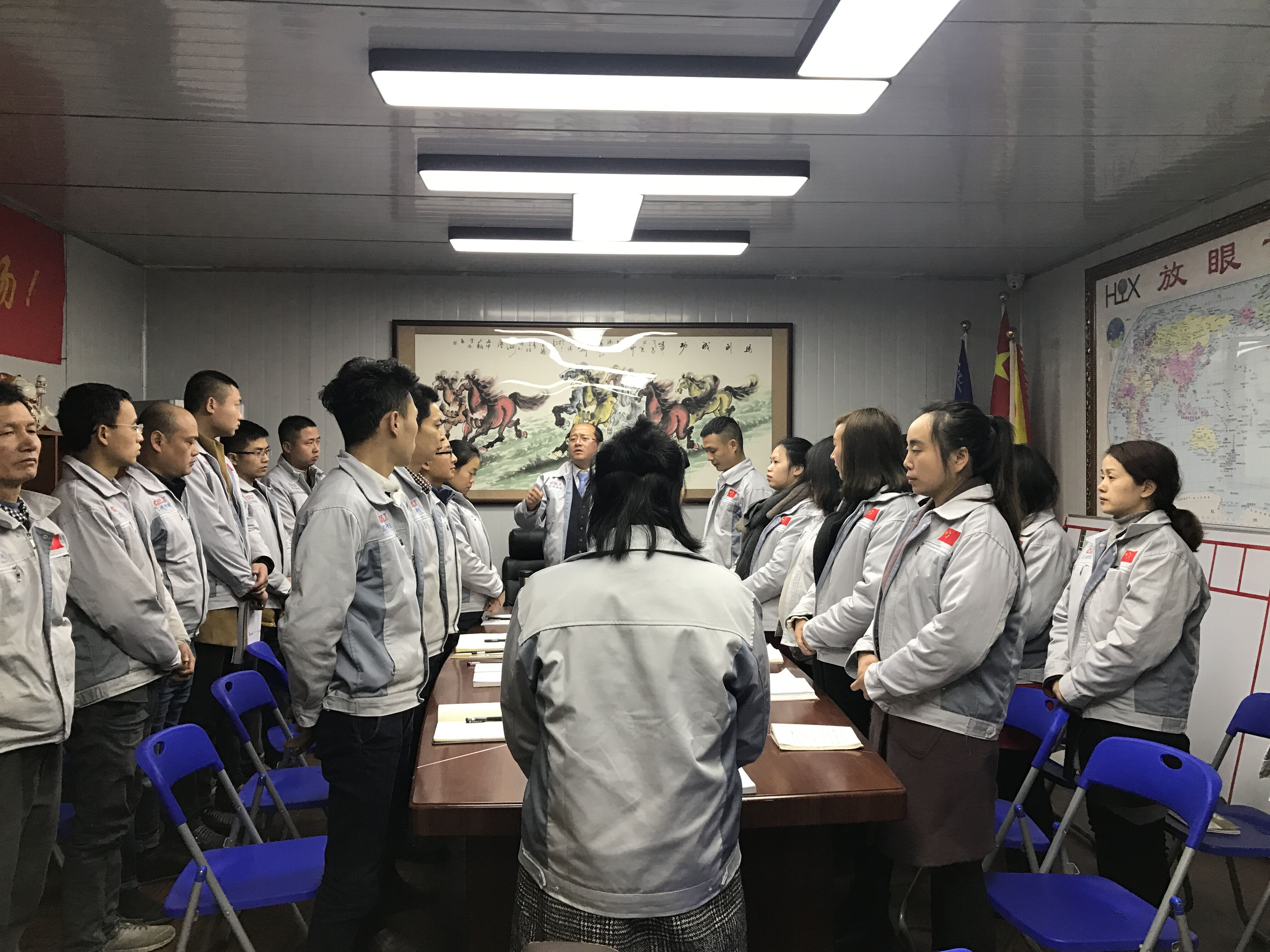 2月27日,匯興智造董事長鐘輝先生蒞臨重慶匯利興子公司考察并指導(dǎo)工作。重慶子公司全體人員對鐘董事長的到來表示熱烈歡迎,并于12點30分由鐘董事長領(lǐng)導(dǎo)召開會議。 鐘董事長在會議上做相應(yīng)會議的闡述 展望未來、登高望遠(yuǎn)。會上,鐘董事長首先提到兩個特質(zhì)“智慧與力量”,進而談到企業(yè)的擁抱變化及展望未來,并切身實際談到匯興智造所擁抱的變化及所具備的十三大體系的升級(客戶、產(chǎn)品、設(shè)備、工具、管理、名字、品牌、宣傳等);進而也公布公司近段時間一系列喜訊事宜并讓我們感受到公司前進步伐的節(jié)奏感及時效感,同時表示國家一系列政策對我司的大力支持與鼓勵,并談及到平臺的力量,品牌的力量”。 全體人員用士氣唱響心中的船(匯利興) 鐘董事長說道:公司”倍增計劃”是以內(nèi)伸與外延相結(jié)合發(fā)展進而勉勵我們:在崗也應(yīng)在職,在職也應(yīng)在職,且人因夢想而偉大,以走一步看兩步想三步為理念朝著目標(biāo)努力奔跑。隨機應(yīng)變,有配而來,整個會議以“匯利興是我們的船而我們在船上”的吶喊聲兒結(jié)束,但那一聲聲強大的聲音滲透在匯利興人每個人的腦海,將永不停歇。