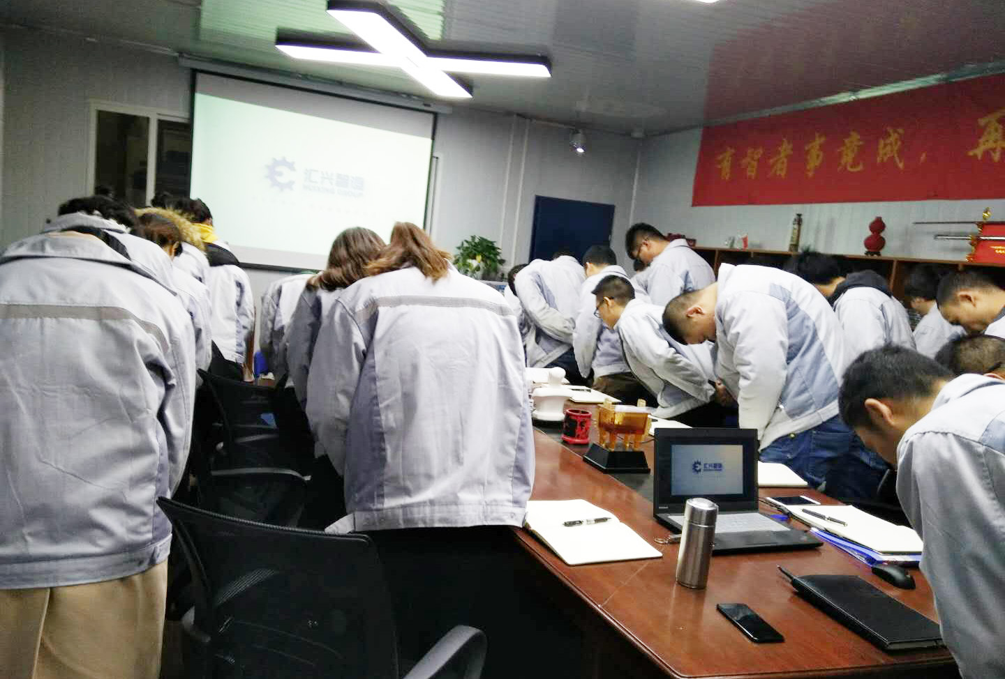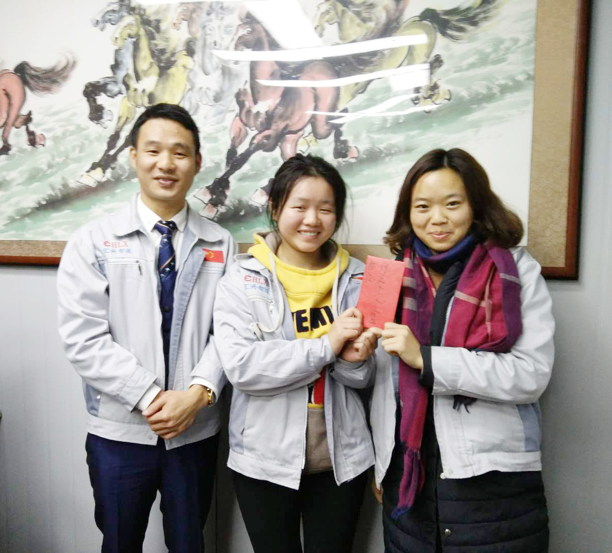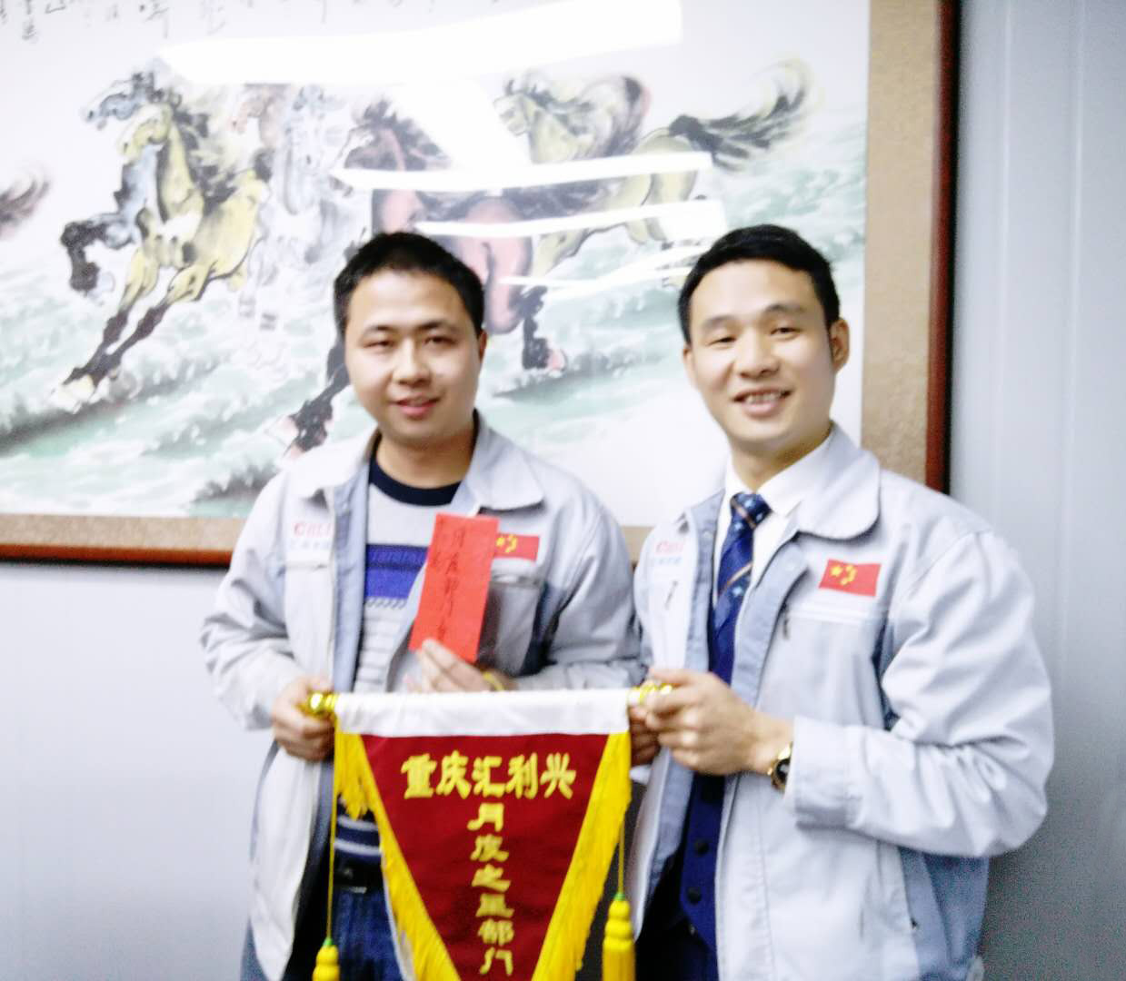 長(zhǎng)風(fēng)破浪會(huì)有時(shí),直掛云帆濟(jì)滄海。12月21日晚,我司全體人員在匯利興學(xué)校召開(kāi)十一月份月度會(huì)議,會(huì)議進(jìn)場(chǎng)依次由自我價(jià)值估秤及簽到入場(chǎng),由張副總主持。 全體員工觀看公司相關(guān)視頻及聆聽(tīng)匯利興之歌 全體人員宣導(dǎo)企業(yè)理念并向企業(yè)三道(人道、孝道、商道)行三鞠躬 會(huì)上,首先依次例行對(duì)每月度最佳部門及個(gè)人的選舉及頒發(fā)獎(jiǎng)金;其次胡總經(jīng)理發(fā)表講話,表示到2017年12月28-30日進(jìn)行年度盤點(diǎn),然后談到公司前進(jìn)的步伐、隊(duì)伍的壯大,并表示大家在一起努力工作是難能可貴的,同時(shí)進(jìn)一步談到2018年度員工相關(guān)福利事宜等。最后張副總作相應(yīng)總結(jié),談到公司在大家共同的維護(hù)及努力下,更加的規(guī)范并表示相信大家在后面的工作中會(huì)更加的努力。 月度部門物控部主管徐財(cái)華(圖左)與胡總經(jīng)理(圖右)同框合影 月度之星胡前敏、姜英(圖右)與胡總經(jīng)理(圖左)同框合影