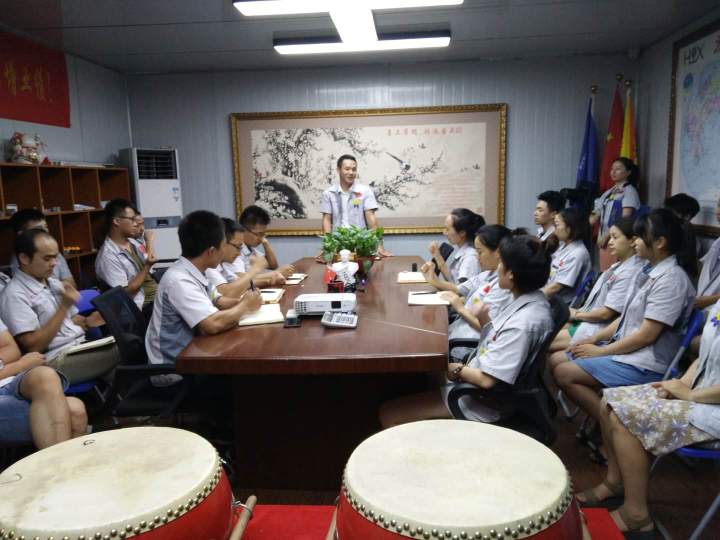 7月19日,匯利興(重慶)公司全體人員在匯利興學(xué)校召開6月份月度會(huì)議。會(huì)議持續(xù)近兩小時(shí),現(xiàn)場(chǎng)氣氛十分熱烈,由行政部主管陳香草主持。 劍風(fēng)所指,所向披靡。會(huì)議開始前,主持人陳香草帶領(lǐng)大家移步匯興文化廠地,整肅衣冠 ,對(duì)匯興人倍加推崇的“三道文化”(孝道、商道、人道)鄭重地鞠躬,莊嚴(yán)宣誓企業(yè)精神“用情做人、用心做事”,團(tuán)隊(duì)精神“忠誠團(tuán)結(jié)、勤奮進(jìn)取”,隨后由匯興兩位女精英擊士氣鼓,凝人心、鼓干勁;緊接著胡偉路總經(jīng)理授予采購部凝聚亮劍精神的一把寶刀,亮出氣勢(shì)、匯聚力量,砍前行荊棘、勇踏匯興征途。 圖一示意圖 圖二采購部家人手握寶刀合影圖 隨著家人們熱情高漲,會(huì)議開啟第二議程。全體人員隨主持人巡視倉儲(chǔ)A區(qū)長材區(qū)與倉儲(chǔ)B區(qū)配件區(qū)庫存及加工區(qū)面貌,集思廣益、廣納諫言并相互監(jiān)督面貌的保持。 圖三示意圖 作為掛牌企業(yè)(股票代碼:839258),匯利興長期以來,一直重視新鮮血液的注入和人才的引進(jìn),截止今日匯利興從之前的幾個(gè)人變成現(xiàn)在的幾十人,團(tuán)隊(duì)力量逐步增強(qiáng),為行業(yè)貢獻(xiàn)力量愈發(fā)強(qiáng)大。會(huì)議開啟第三議程-新員工入職歡迎儀式,物控部徐主管為新員工頒發(fā)紀(jì)念品。 徐主管為新員工頒發(fā)紀(jì)念品示意圖 為了增強(qiáng)企業(yè)凝聚力,表彰先進(jìn),樹立楷模,激勵(lì)員工奮發(fā)向上,形成人人爭當(dāng)先進(jìn),人人為公司發(fā)展做貢獻(xiàn)的行為,實(shí)現(xiàn)持續(xù)有效的激勵(lì)機(jī)制和企業(yè)良好傳統(tǒng),會(huì)議發(fā)起第四個(gè)議程——表彰儀式,對(duì)6月份在工作中表現(xiàn)突出的優(yōu)秀團(tuán)隊(duì)和個(gè)人給予表彰。 優(yōu)秀團(tuán)隊(duì)工程部家人獲得者與張副總合影示意圖 月度之星周榮、李如洪家人與張副總合影示意圖 隨后部門負(fù)責(zé)人(徐主管、蒲經(jīng)理、熊經(jīng)理)作2018年度工作總結(jié),總結(jié)上半年工作及部門的得與失,有則改之無則加勉。談到各部門間配合密度,工作作風(fēng)及個(gè)人精神面貌等相關(guān)事宜。并隨即提到匯利興獨(dú)有的企業(yè)文化“家人”,匯興每一位同事都是彼此的家人,并肩作戰(zhàn)的家人,共筑匯興夢(mèng)的家人。 徐主管、蒲經(jīng)理、熊經(jīng)理作2018年度工作總結(jié)示意圖 會(huì)議最后,胡偉路總經(jīng)理作會(huì)議總結(jié)及未來展望。會(huì)上,胡偉路總經(jīng)理首先對(duì)三位負(fù)責(zé)人所作的發(fā)言,提出了新的總結(jié)及建議;其次,針對(duì)目前所存在的短板作出了相應(yīng)的指示并勉勵(lì)匯興人要學(xué)會(huì)總結(jié)、學(xué)會(huì)反思,這不僅是一種智慧,更是下次進(jìn)步的開端。并表示,匯利興團(tuán)隊(duì)至始至終都是最棒的團(tuán)隊(duì),永不言敗的團(tuán)隊(duì);因此要堅(jiān)信自己、相信自己,穩(wěn)扎每一步伐,向前沖! 圖四示意圖 最后,全體匯興人起立,整肅衣冠,擊士氣鼓并齊喊“為夢(mèng)想沖刺,我是匯利興的一名戰(zhàn)士”,整個(gè)會(huì)場(chǎng)環(huán)繞著吶喊聲,現(xiàn)場(chǎng)激情澎湃、士氣高昂、振奮人心。