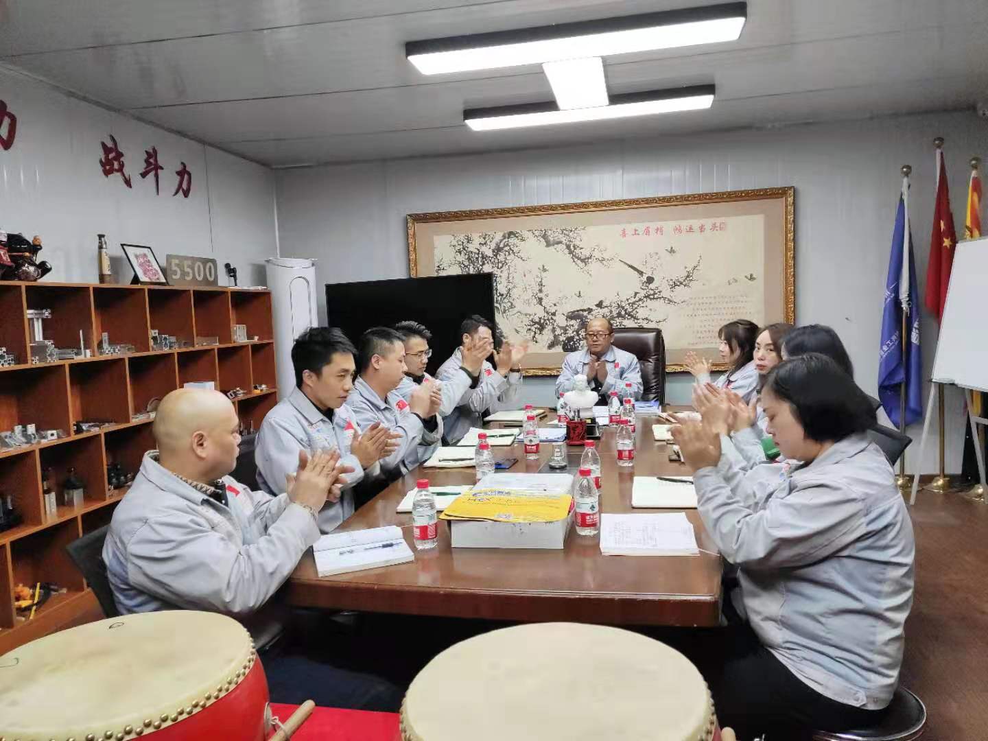 12月9日,公司董事長鐘輝先生蒞臨重慶子公司考察并指導(dǎo)工作,于16點40分在會議室召開主管會議。 會議前,例行匯利興企業(yè)文化,兩位核心高管敲響士氣鼓,士氣比武器更重要。
