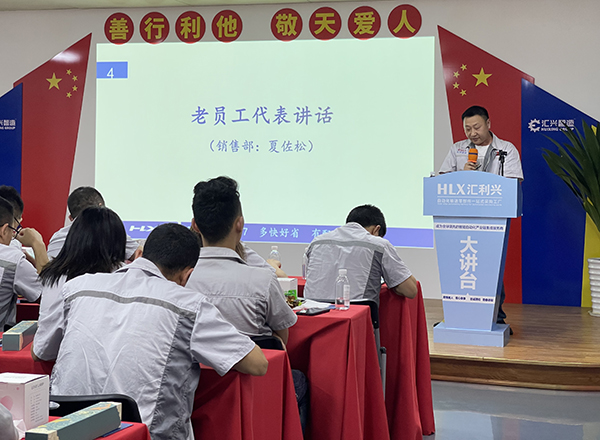 老員工代表蒲曾紅發(fā)表感言。蒲經(jīng)理表示回首過去,公司從三個人再到一群人,從1個門市再到今天,我們十年風華正茂,一步一個腳印蓄勢向前,精進不息。這一路走來,揮灑了很多匯利興人的汗水,每一次搬遷,都代表著一段歷史的結(jié)束,一個新征程的開始,并進一步勉勵全體員工要有計劃、有目標、有結(jié)果的去執(zhí)行每項工作,腳踏實地跟隨公司的步伐一路向前。