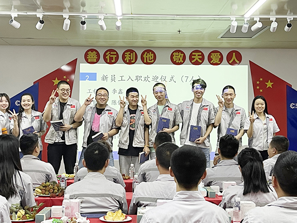 士氣比武器更重要。三位高管敲響士氣鼓,用力量來詮釋我們新的征程,鼓舞每位員工一路向前。全體員工向企業(yè)三道孝道、商道、人道鄭重鞠躬,宣讀企業(yè)文化,并對本月新入員工進行歡迎儀式。